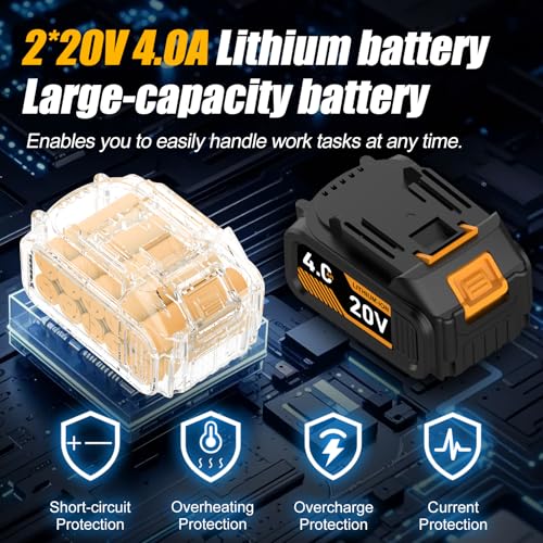Extended Runtime with Dual 4.0Ah Batteries-Equipped with 2 powerful 4.0Ah Lithium batteries, this 1/2 impact wrench offers exceptional runtime, allowing you to work for extended periods without constantly recharging. This dual-battery setup is ideal for professionals tackling demanding, long-duration projects and minimizes downtime, so you can stay focused on getting the job done efficiently.