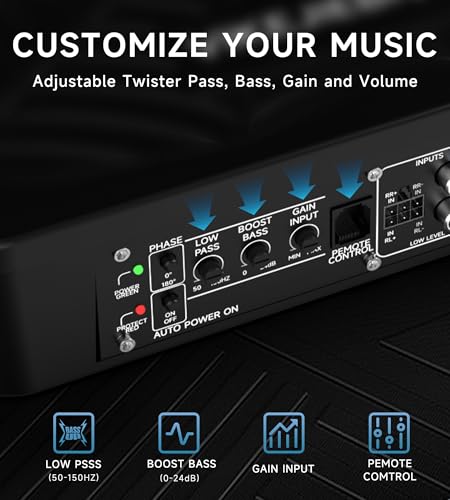 [Customize Your Music]–The Subwoofer car has individual adjusting twisters that can adjust the Low Pass Filter:50Hz-100HZ, Bass Boost: 0 – 24dB, Gain Input: Min-Max, and Volume control. Let every song beat its own music note
