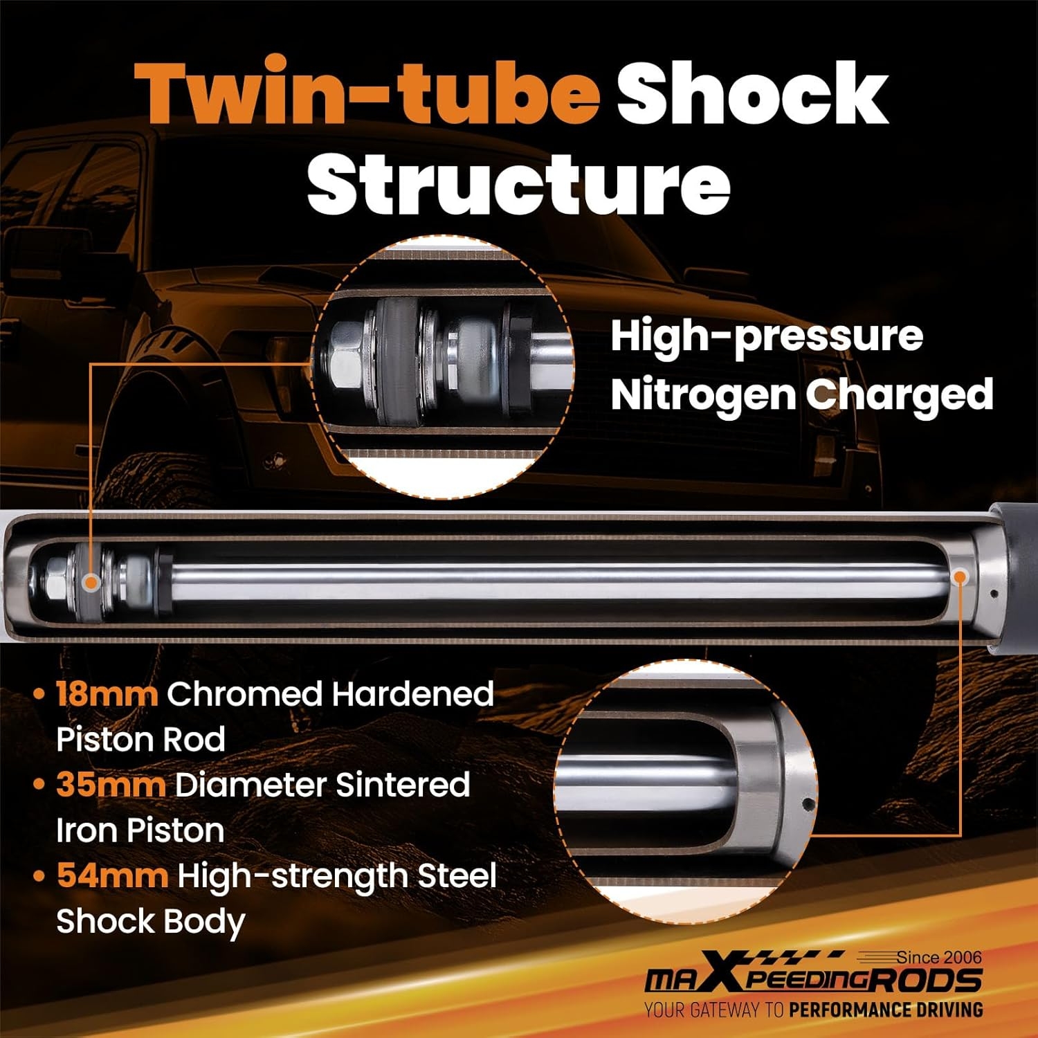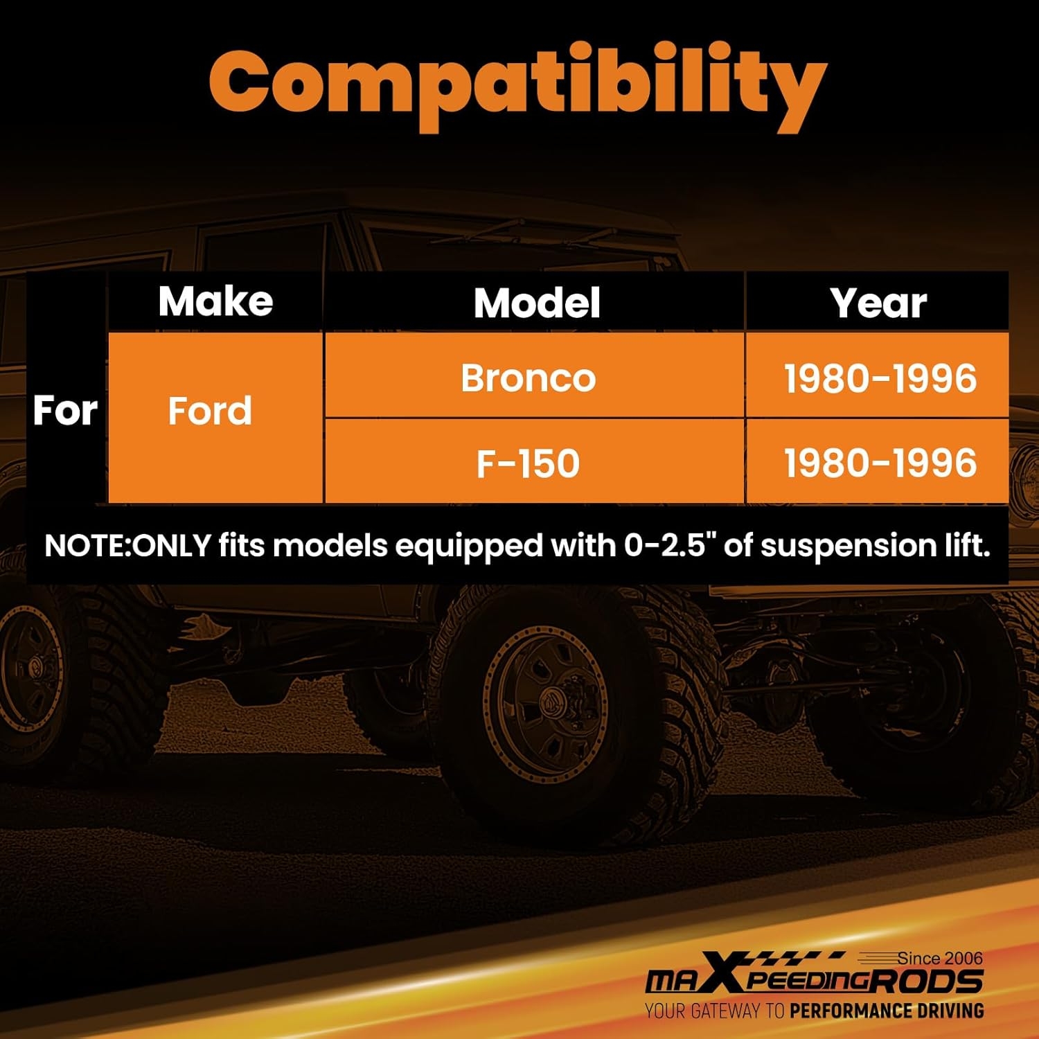 Specification: maXpeedingrods 0-2.5” Front Shocks for Ford F-150 Bronco 1980-1996 4WD, G1 Series Upgraded