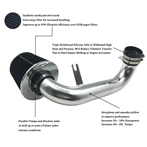 This cold air intake system designed to increasing 8-10% horsepower & 6-10% torque, improveed fuel economy and creating an attractive intake noise.