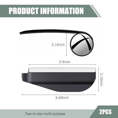 Product Details: You will receive 2 x 2-in-1 rear view blind spot mirror rain eyebrow. The rain eyebrow measures 6.69″ x 2.16″, the small round mirror is 2.16″ in diameter, and the adhesive length is 5.9″. Slim design does not affect the folding of side view mirrors. Suitable for most car rearview mirror accessories, two-in-one design, one step, no need to buy separately, saving time and money.