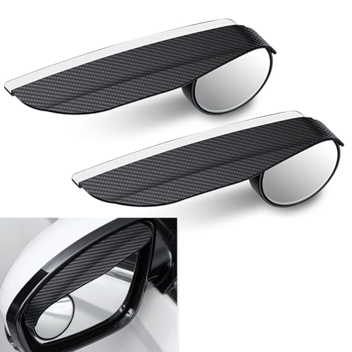 getfay Pack-2 Car Rearview Mirror 2-in-1 Rain Eyebrow + Blind Spot Mirror, Adjustable Expanded View Reversing Mirror, Carbon Fiber Divert Rainwater Reflective Protector, Universal for Cars (Black)