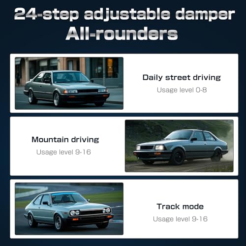 Full Range Adjustment:24-stage damping + spring pre-pressure dual adjustable, supporting the full range of scenarios from daily walk to track day needs.