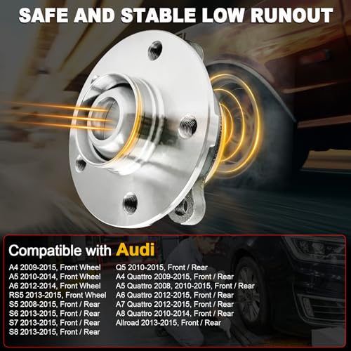 VEHICLE FITMENT – 513301 Wheel hub Compatible with Audi A4 2009-2015 | A5 2010-2014 | A6 2012-2014 | RS5 2013-2015, 𝗙𝗿𝗼𝗻𝘁 𝗪𝗵𝗲𝗲𝗹 𝗢𝗻𝗹𝘆. For Audi S5 2008-2015 | S6 2013-2015 | S7 2013-2015 | S8 2013-2015 | Q5 2010-2015 | Allroad 2013-2015 | A4 Quattro 2009-2015 | A5 Quattro 2008, 2010-2015 | A6 Quattro 2012-2015 | A7 Quattro 2012-2015 | A8 Quattro 2010-2014, 𝗙𝗿𝗼𝗻𝘁/𝗥𝗲𝗮𝗿 𝗪𝗵𝗲𝗲𝗹