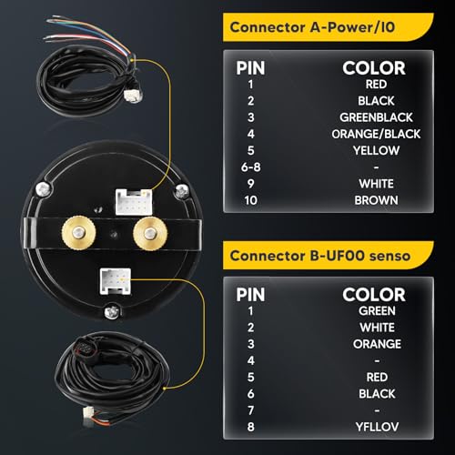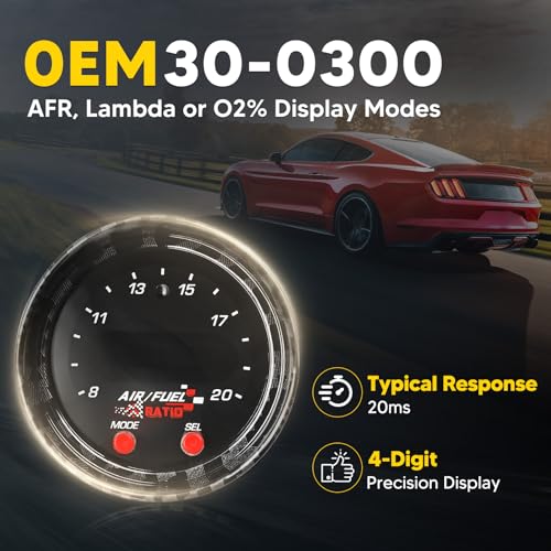 This air fuel ratio gauge comes with 4.9 LSU sensor, display AFR values in hundredths of a second, The readings are accurate and fast, that report precise and reliable reference to the car engine in real-time, offer more optimized engine tuning and safer overall operating conditions. Note: Free air calibration is not required when used with our Wideband O2 UEGO AFR gauge.
