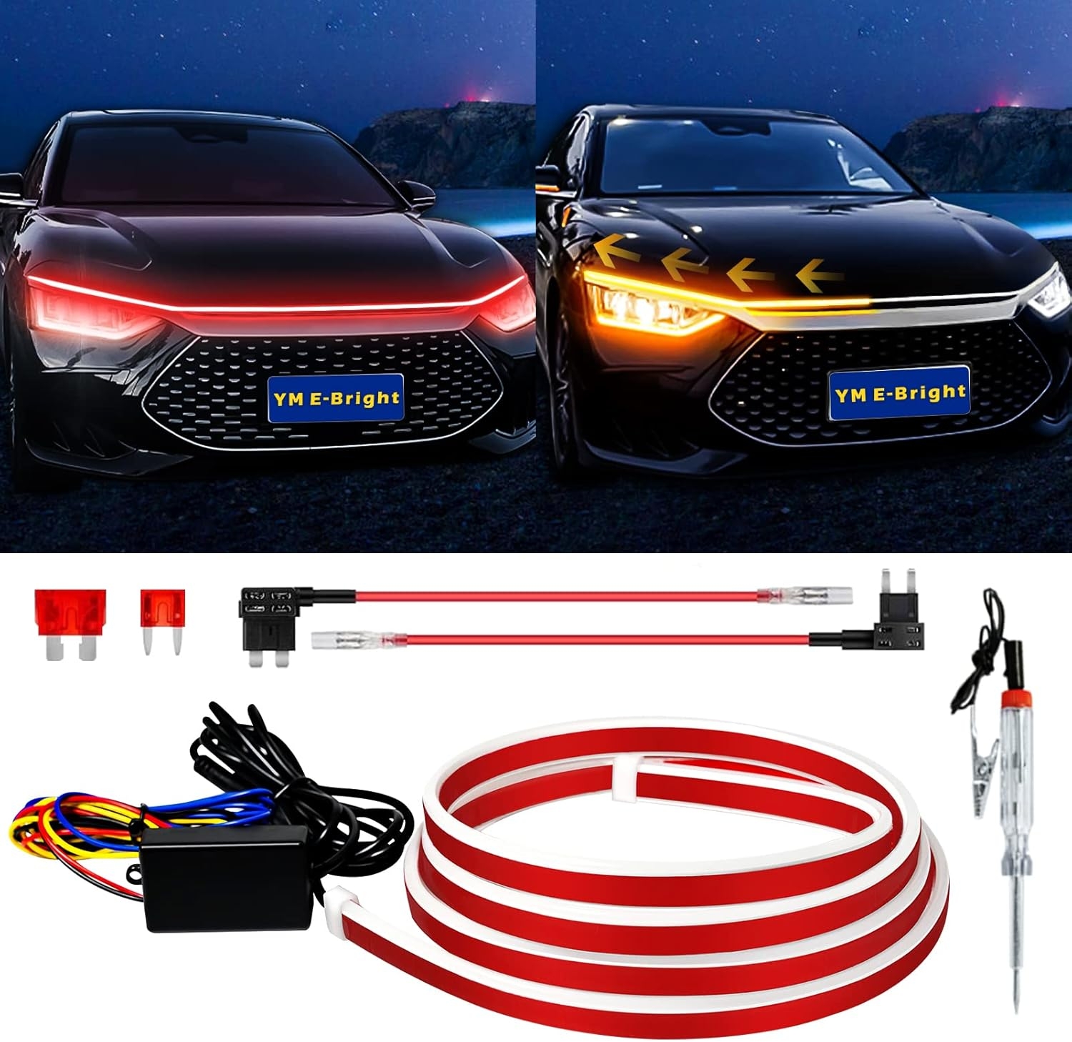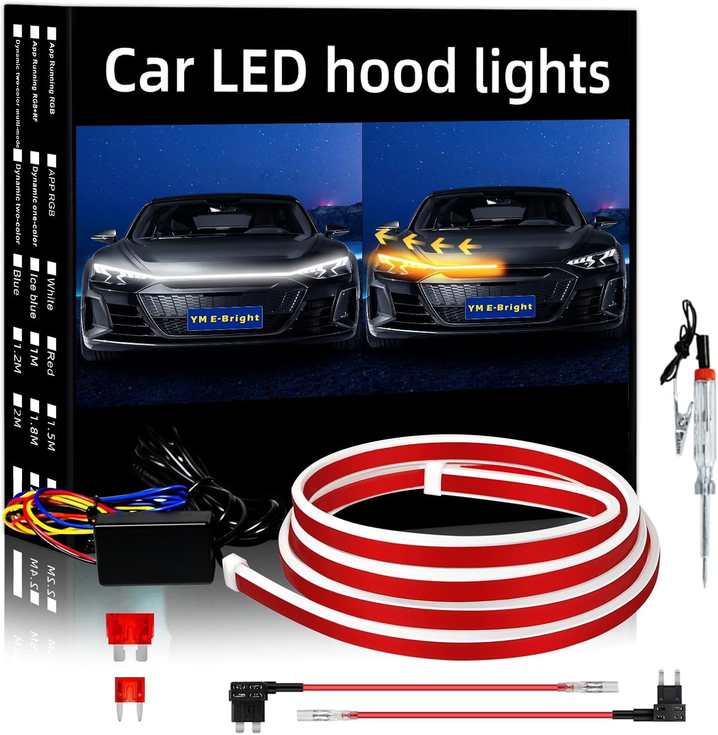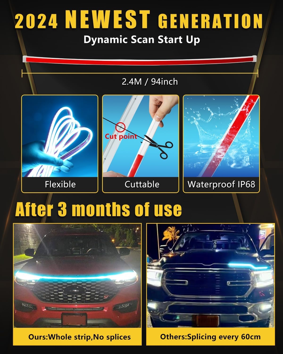 Applications: Car Hood Light Strip, Car Grill Light strip, Daytime Running Light, Engine Cover Decoration light, license plate lights, ambient light, Pedal lights,Boat Light strip .