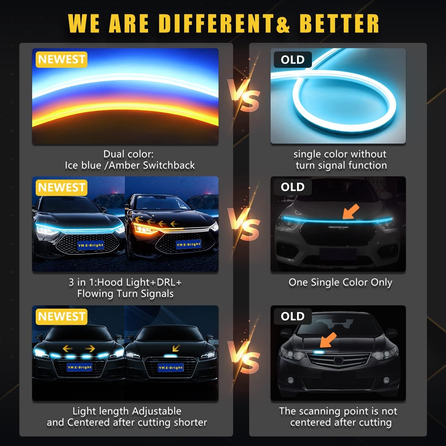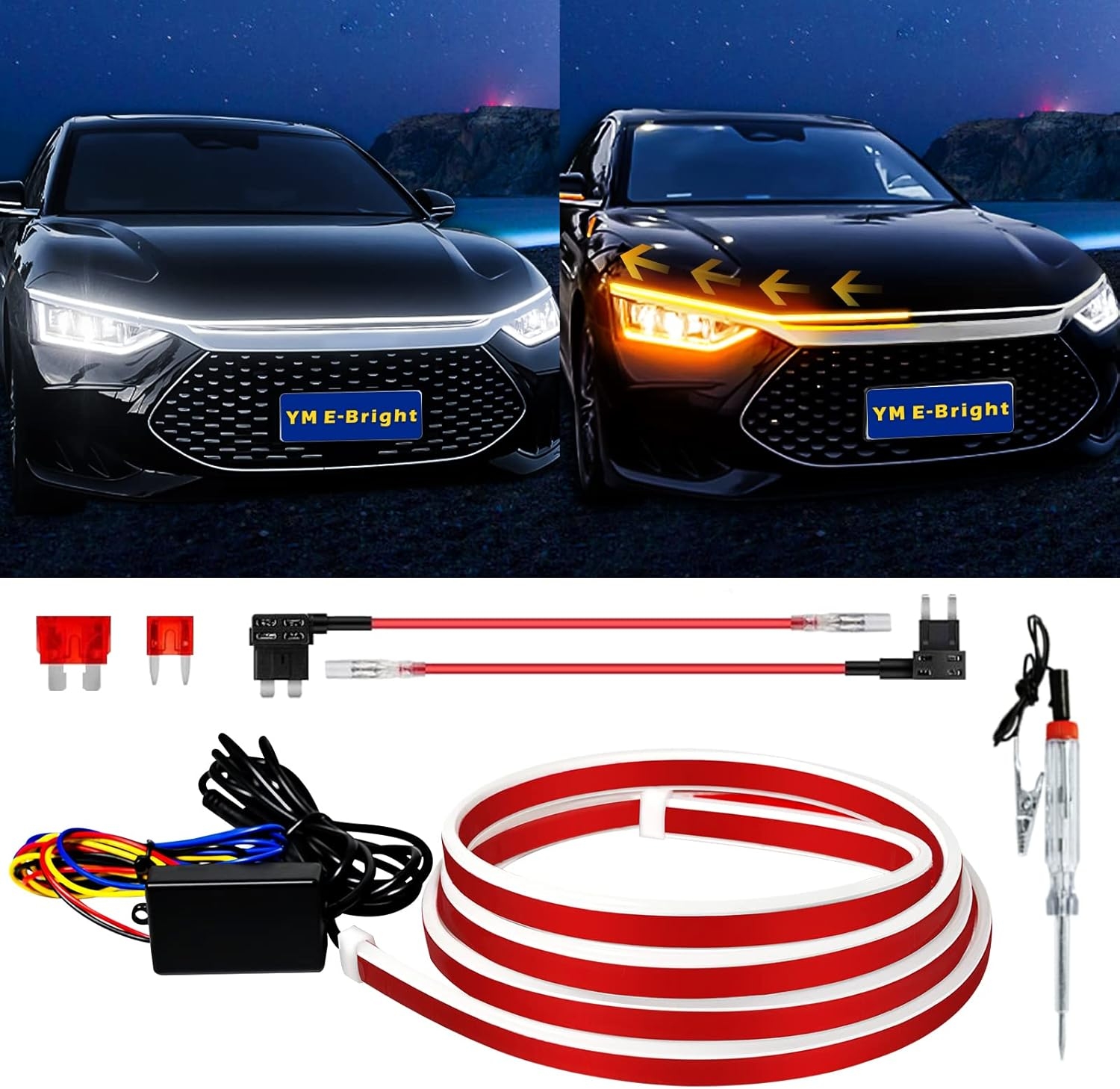 You are freely to adjust the length of amber light strip to be half length ,or same length as your headlights ,