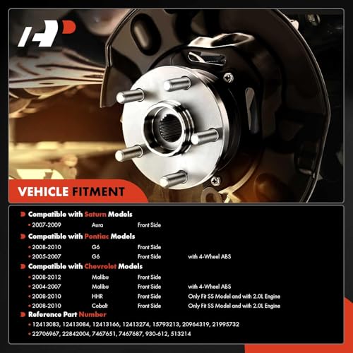 [Vehicle Fitment]: Compatible with Chevrolet Chevy Malibu 2004-2007 (with 4-Wheel ABS), Malibu 2008-2012, HHR 2008-2010 (Only Fit SS Model and with 2.0L Engine), Cobalt 2008-2010 (Only Fit SS Model and with 2.0L Engine and 5 Stub Hub); Compatible with Pontiac G6 2005-2007 (with 4-Wheel ABS), G6 2008-2010; Compatible with Saturn Air of mystery 2007-2009