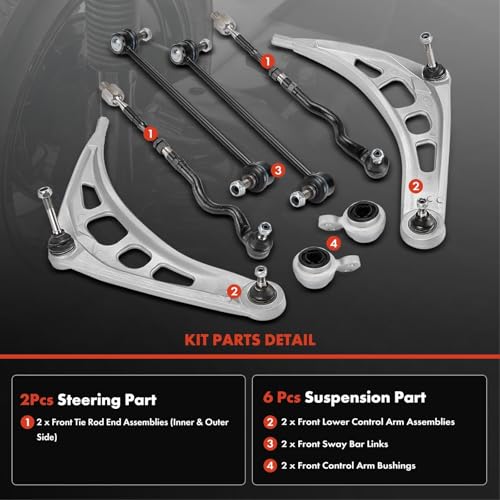 Specification: A-Premium 8Pcs Front Suspension Kit, Lower Control Arm & Bushing, Sway Bar Link, Inner Outer Tie Rod End, Compatible with BMW E46-1999-2008-318i 323Ci 323i 325Ci 325i 328Ci 328i 330Ci 330i Z4