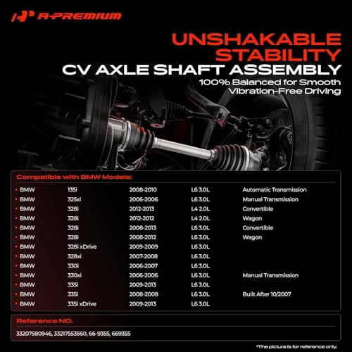 Replacing a worn rear passenger side axle with this A-Premium CV Axle Shaft Assembly helps restore factory-like operation and keeps your BMW putting power down the way it should.