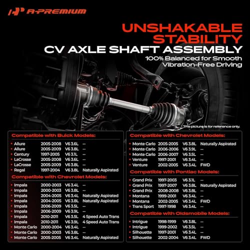Specification: A-Premium CV Axle Shaft Assembly Compatible with Chevy, Buick, Pontiac & Oldsmobile Models – Impala, Monte Carlo, Venture, LaCrosse, Allure, Century, Regal, Grand Prix – Front Right Passenger Side