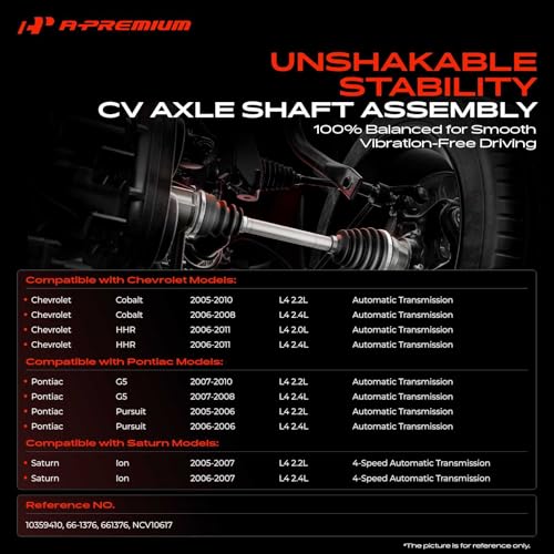 Specification: A-Premium CV Axle Shaft Assembly Compatible with Chevy Cobalt 2005-2010, HHR 2006-2011 & Pontiac G5, Pursuit 2005-2006 & Saturn Ion, Front Driver or Passenger Side, Replace# 10359410