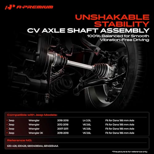 Specification: A-Premium CV Axle Shaft Assembly Compatible with Jeep Wrangler 2007-2018, Wrangler JK 2018, Dana 186 mm Axle, Front Right Passenger Side