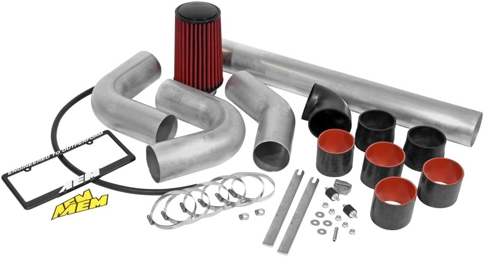 It comes with an AEM Dryflow Air Filter, three 4 inch diameter aluminum tube bends, one straight 36 inch long, 4 inch diameter tube, seven couplers, a weld-on mass air flow sensor pad, two brackets and hardware needed to custom build an air intake.