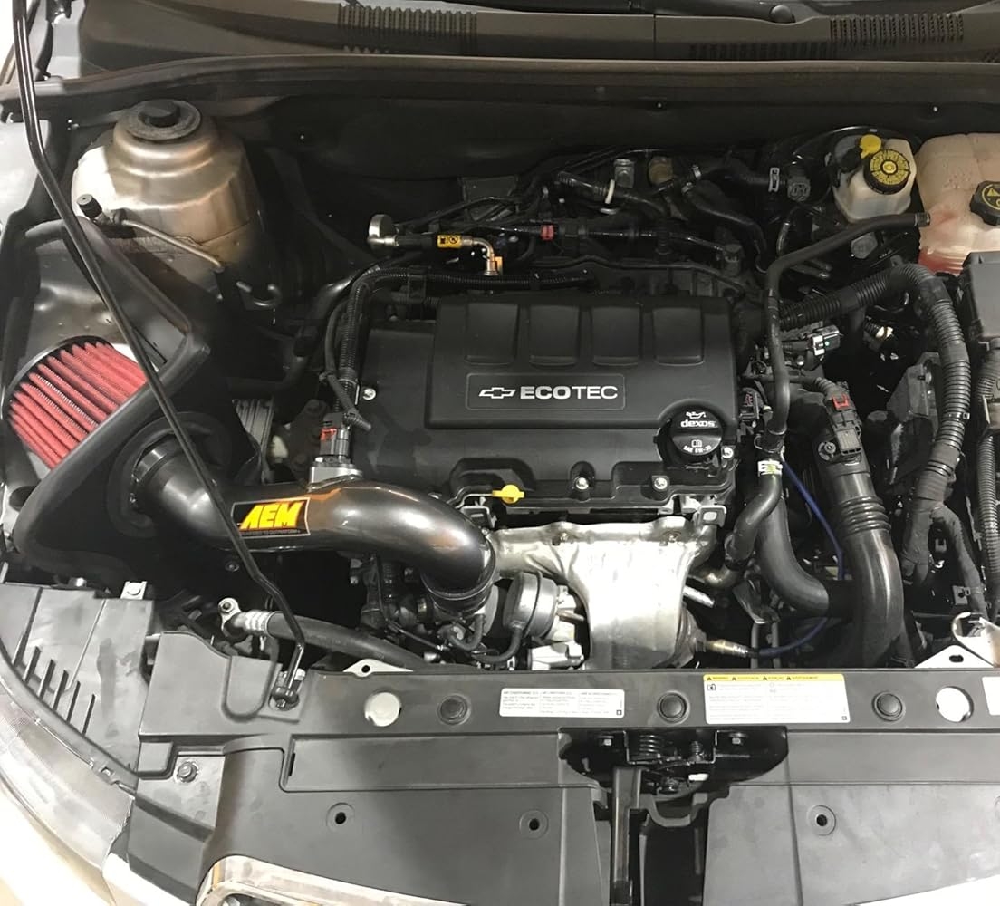I purchased this product for my 2014 Chevy Cruze 1.4l turbo with 130k miles. I had noticed my car seemed to be lagging and figured this would be a cheap way to increase performance at a good value. I’ve put 230 miles on this intake and though I haven’t really noticed an increase in power or MPG’s (which would require a tune for a noticeable difference) I have noticed smoother shifting (automatic trans) and less “lag” when going up hills. I also noticed more turbo noise and blowoff noise, which in my opinion are an added bonus :PSure, you can get a cheaper intake through Spectre, but this one is completely emissions approved (CARB). I decided to go with this AEM over K&N after doing quick research. The main difference in the two is this one is a “dry” filter while K&N has an oiled filter, which I’ve heard can mess with the MAF sensor.Install took me (with very little mechanical knowledge) about a half hour to install. Everything I’ve seen says to disconnect the battery before install, and I did, and have not had any check engine lights so far (fingers crossed).Overall, I enjoy this product, and would recommend to anyone!