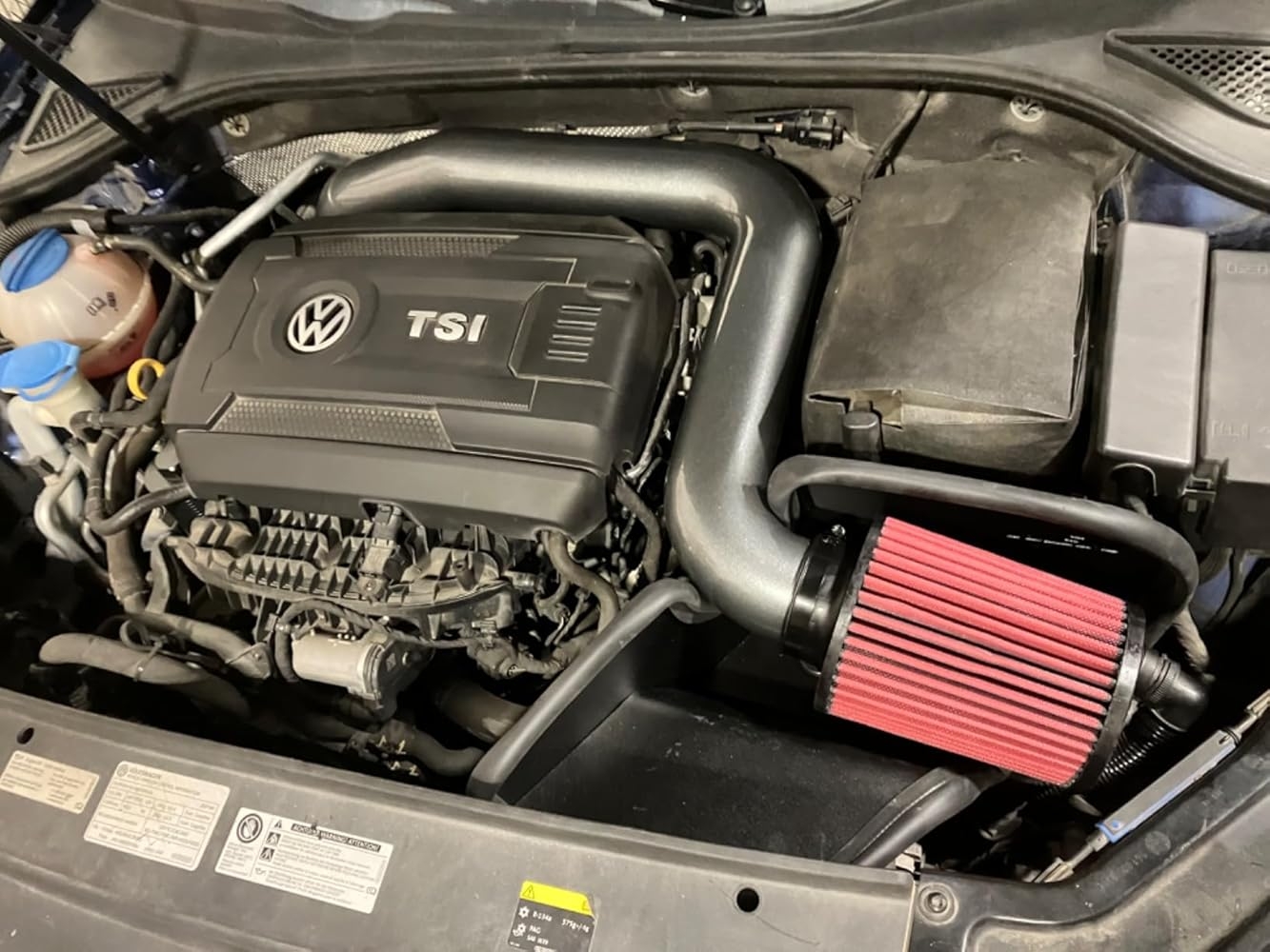 Installed this intake on my ’17 VW Passat 1.8T Gen3 and it made a big difference and wold recommend for anyone trying to improve performance on their 1.8T or any car for that matter. Made a noticeable difference and would make this purchase again. You can hear the air flow moving now especially when you get on it. My MPGs improved too. Would couple this with a few other mods as well (CTS throttle and turbo piping. $150 for each part to get rid of pancake piping). I also have a MagnaFlow 3″ exhaust, JB4 tuner, and CTS 3″ downpipe w/cat (90 degree O2 sensor-no CEL) and will NEED to get a Vibrant resonator (farts and sounds ridiculous)…but the car now moves!!! In any case…Installation was fairly easy. The hardest part was installing the PCV valve and clipping it in but don’t give up and follow the directions. I cut one corner and had to go back and basically install it again which didn’t take long. It does rub a bit on the spark plug plastic railing (no big deal. Just bend it a bit). Hopefully the bracket does not break on me do I will monitor accordingly. 1 month in and going well. Intake filter will be easy to clean down the road.