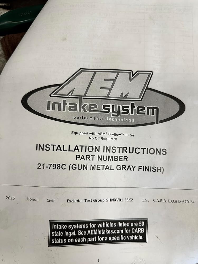 The air intake system is backed by AEM’s Lifetime Limited Warranty. Some AEM air intakes are not legal for sale or use in California and other states adopting California emission standards, while others are 50 state legal. View the AEM 21-798C vehicle applications to determine the legal status for each vehicle.