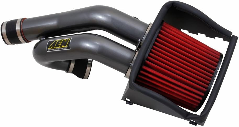 High-quality build: mandrel-bent aluminum tubing finished in gunmetal grey, oversized AEM Dryflow washable filter, and heat shield to reduce intake air temperature.