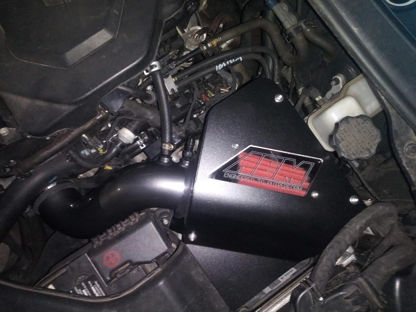 • High-flow Dryflow filter (oil-free, washable, reusable) designed for longevity (up to ~100,000 miles before cleaning under ideal conditions). AEM Intakes