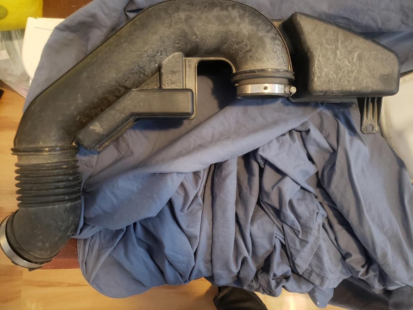 Fit the gun-metal aluminum intake tube, secure with clamps and couplers.