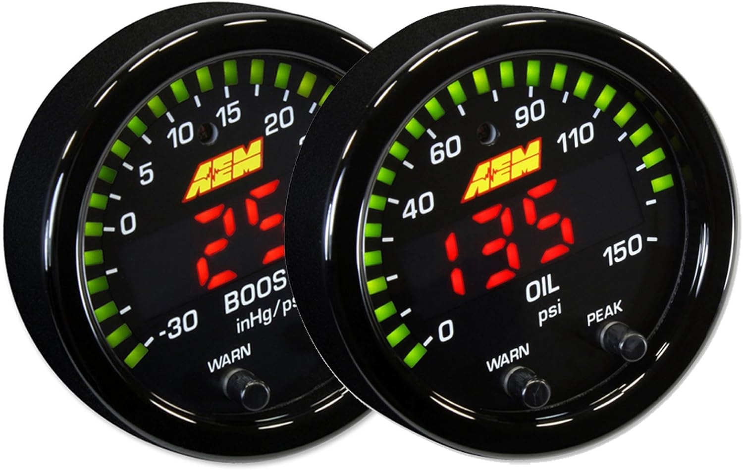 The AEM X-Series UEGO + Boost 35 PSI + Fuel/Oil Pressure 0–150 PSI Gauge Set is one of the most complete and accurate gauge combinations you can run on a performance vehicle.