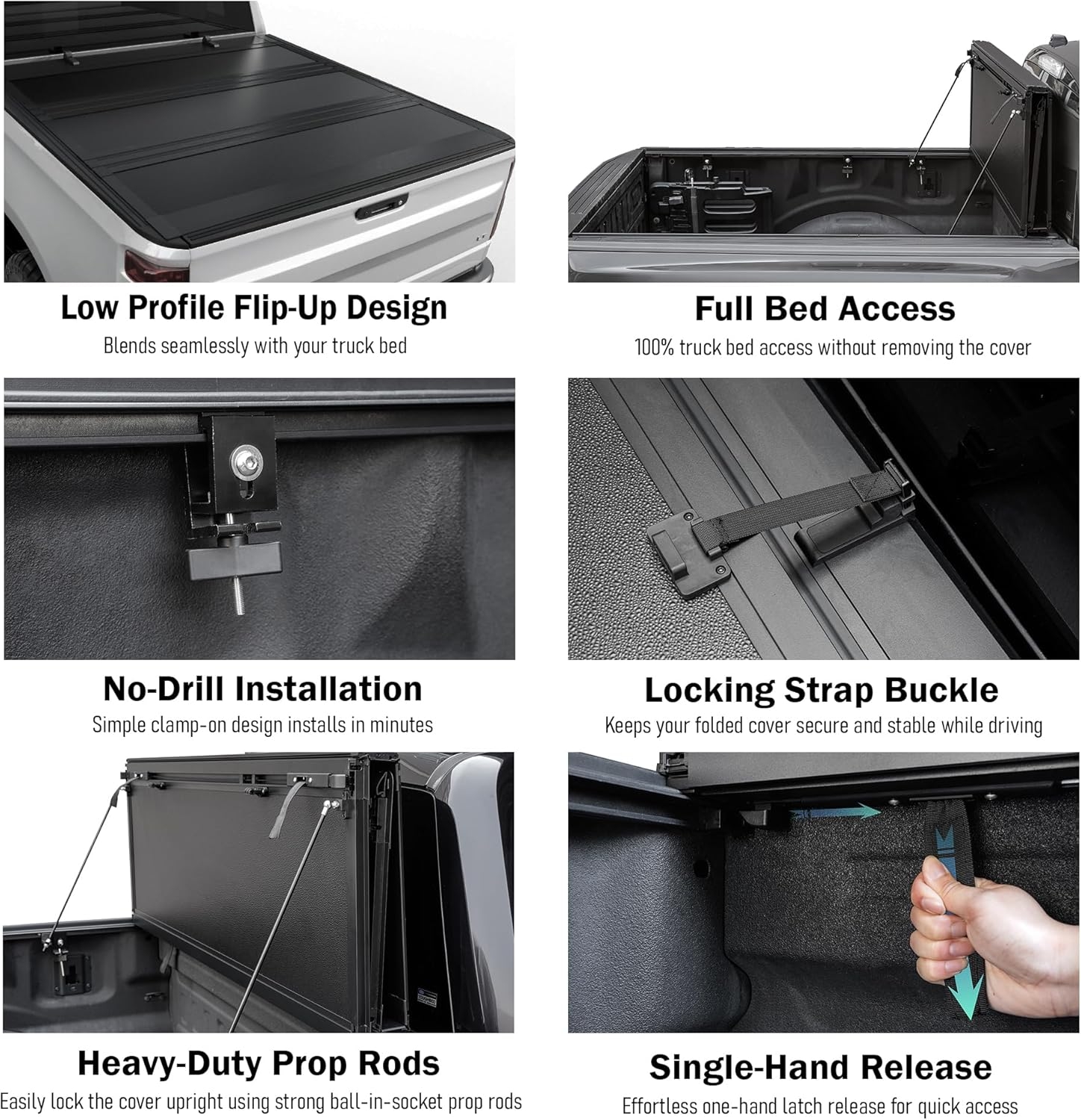 This cover is easy to install, and isn’t so heavy that you need a second person to help get it in place. Folding, removing, and setting it back on takes very little time and is even easier than the initial install. If you have an automated tailgate, loosen the last panel just a bit so the motor can push into the seal – or just close it the last bit by hand. We had a large storm come through (horizontal rain and all) a couple days after I installed, and there was only a small area wet from where I hadn’t adjusted the second panel quite tight enough- it was only wet on the edge of the bed where the water seeped through. Great construction, durable, intuitive design, easy to remove and use, and a great value!