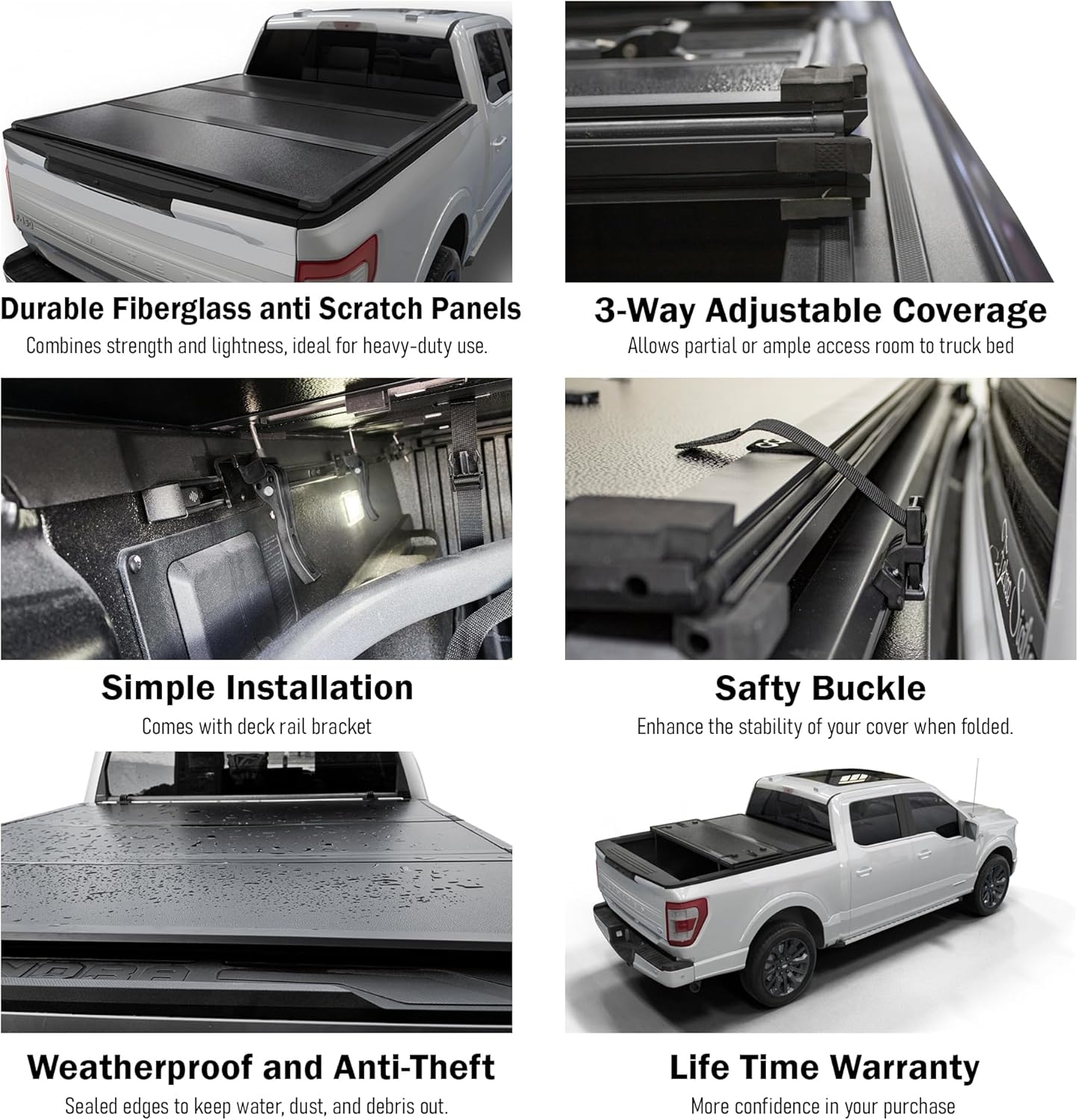 I’ve got the short bed. Needed something to keep items dry and secure, and didn’t want to break the bank. I was able to get this on sale otherwise i wouldn’t have bought it. The installation was fairly straightforward and took about 40 minutes. I’ve had it a month now. It fits well, hasn’t leaked, looks good. It’s lightweight for its size. The latches hold it closed, allowing me to secure items if I lock the tailgate. I can’t give it a 5-star rating because I’ve owned the factory-style folding covers and the latch system on those is easier to open, they latch automatically, and the latches themselves take up almost no space. This system has latches that are a bit more technical to open, and re-latch, and the latches themselves need included rail hardware installed, and protrude into the bed a few inches. The latches also have to be adjusted manually (flat) to fold back the panels.