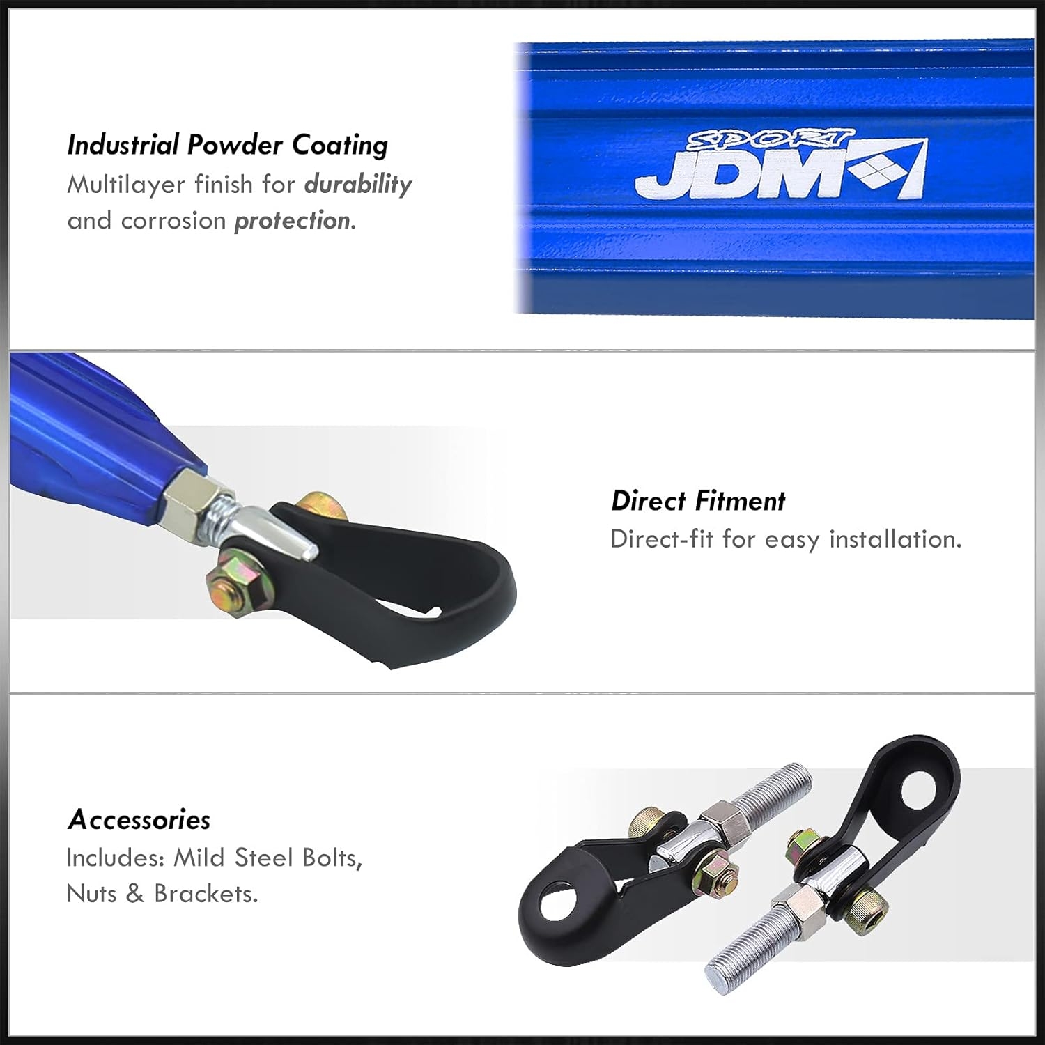 - Prevents body chassis flexing under heavy stress from hard cornering in order to improve steering response and driving stability.