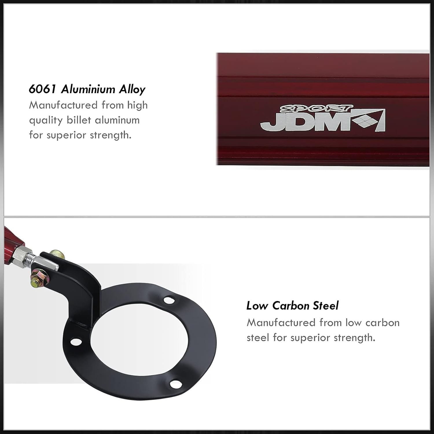 - JDM Sport front upper billet aluminum strut bar.