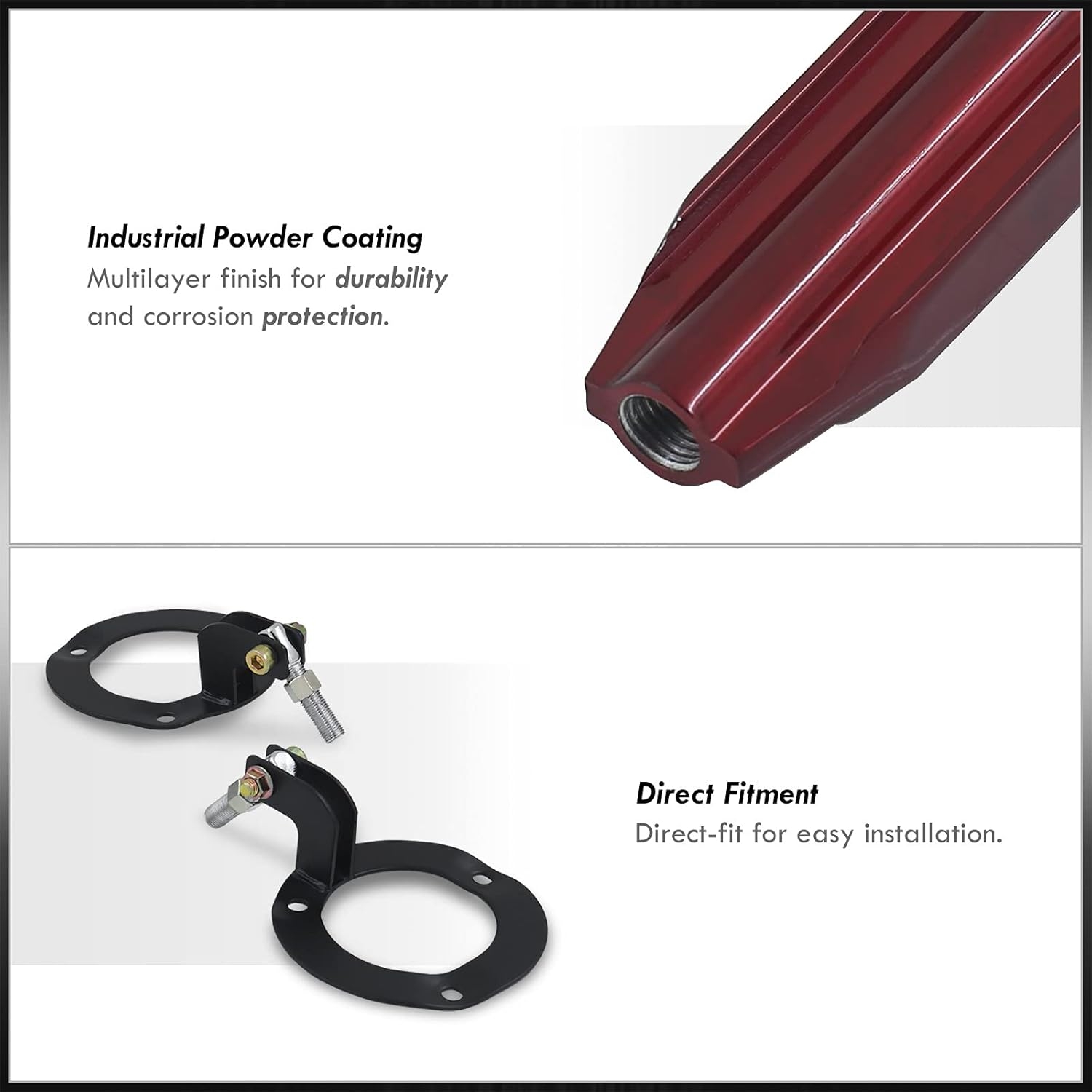 - Prevents body chassis flexing under heavy stress from hard cornering in order to improve steering response and driving stability.