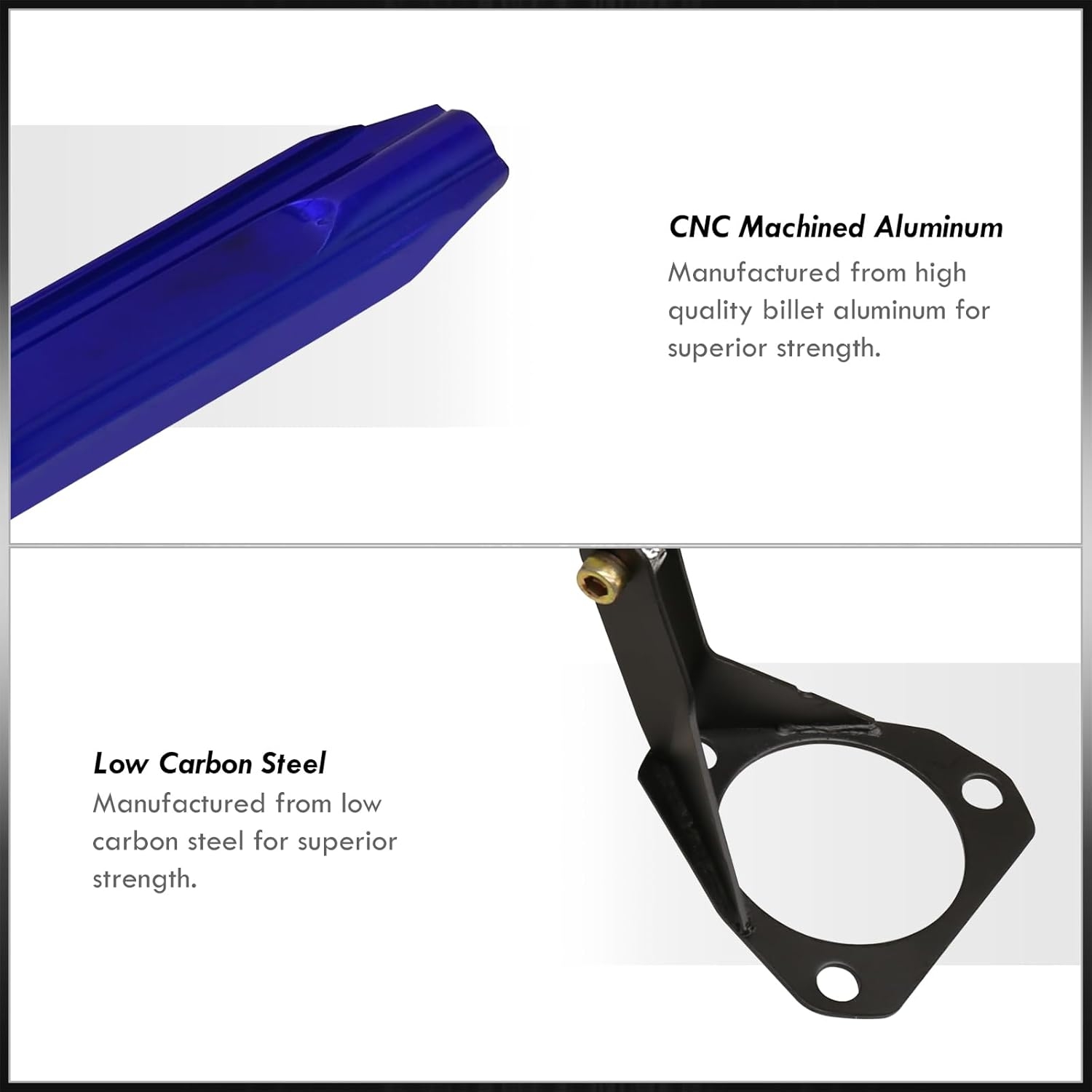 - Prevents body chassis flexing under heavy stress from hard cornering in order to improve steering response and driving stability.