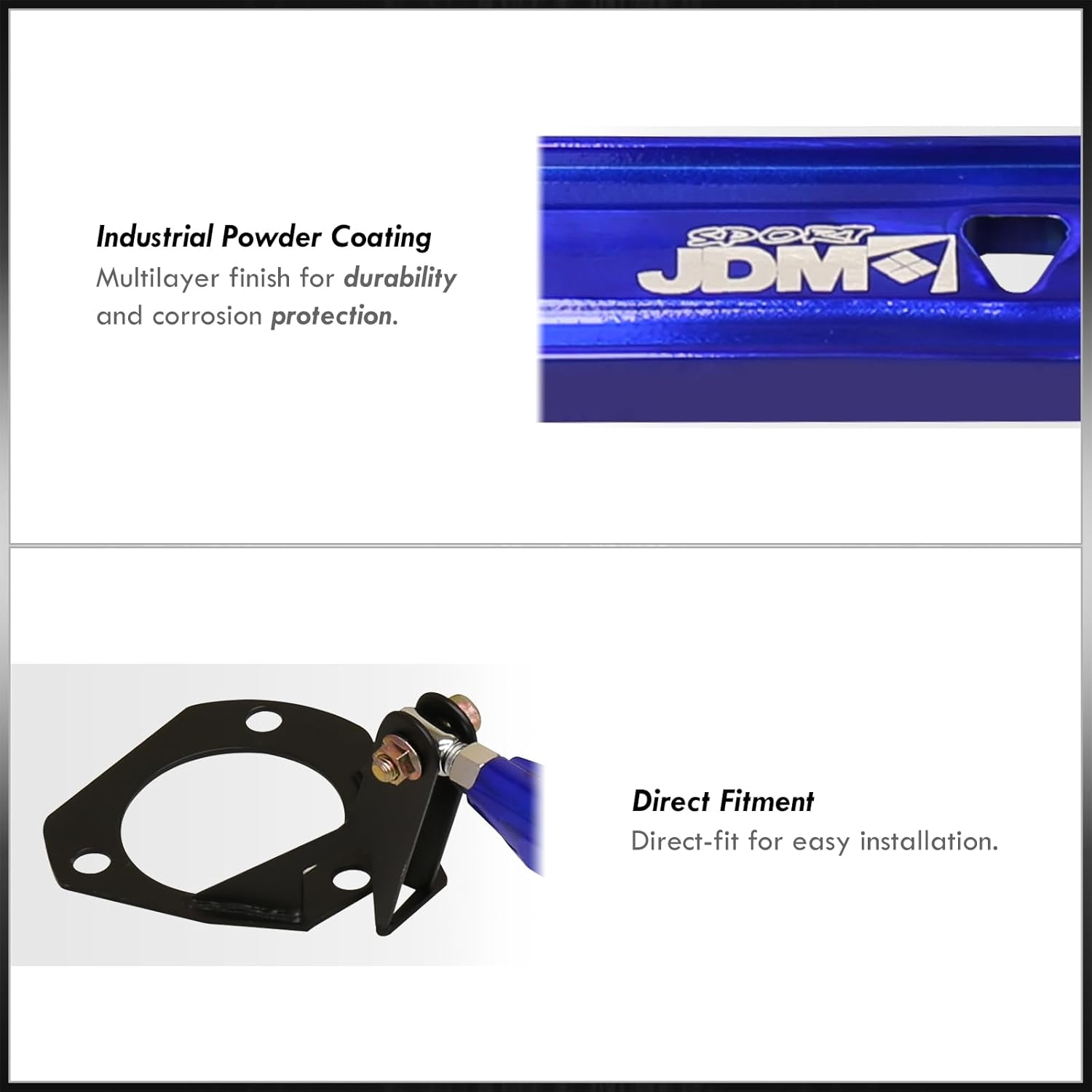 - JDM Sport front upper billet aluminum strut bar.