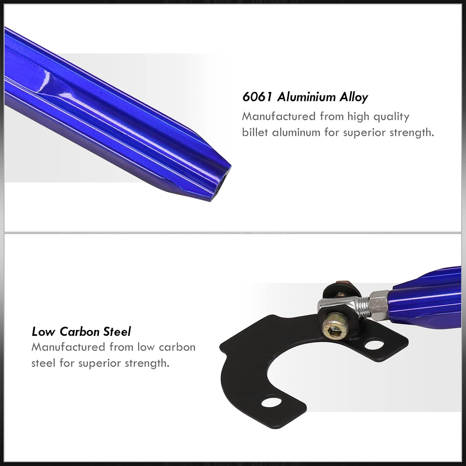 - Prevents body chassis flexing under heavy stress from hard cornering in order to improve steering response and driving stability.