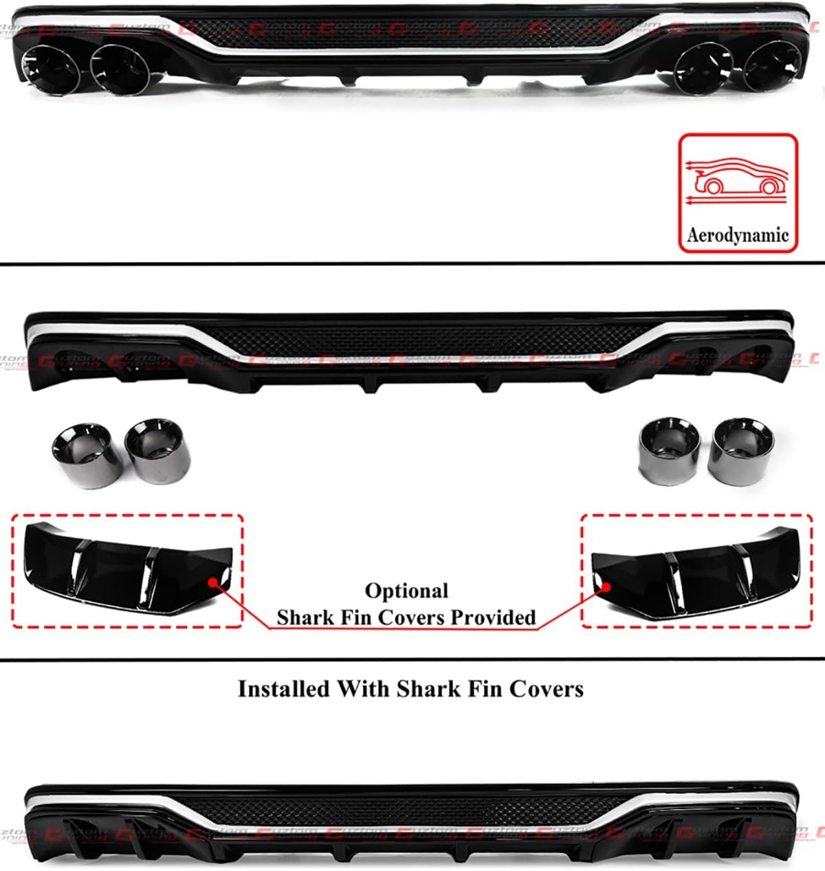 Please Note That The Decorative Tips Are Made Out Of Plastic, These Are Not Metal Exhaust Tips. They are Add-On Parts to the Diffuser Which Will Be Secured By the Screws Provided. Please Refer to Pictures.