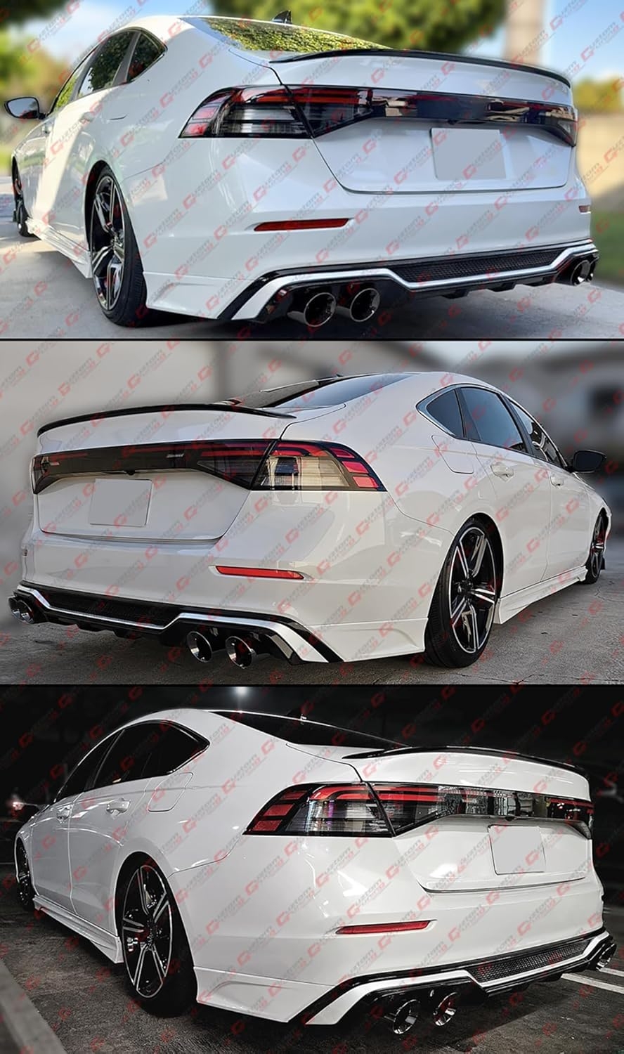 This Is A Newly Released Kit From Akasaka. The Diffuser Kit Features a Special 2-Tone Finish: Gloss Black With White Trim. The 2 Corner Spats Are In Painted Pearl White Finish. The Decorative Exhaust Tips Comes in Titanium Metallic Color. This Kit Gives Your 11th Gen Accord The Much Needed Modern and Sporty Rear End.