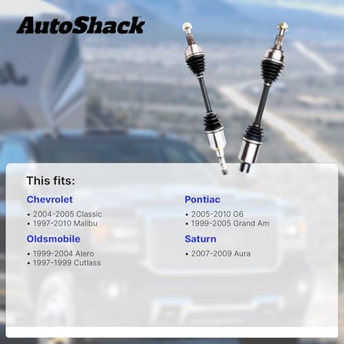 Specifications: Includes 2 Front CV axle shafts with Driving force side: 21.56″ (547.5 mm) overall compressed length and 34 Teeth Inner spline count and 30 Teeth Outer spline count and Passenger side: 21.56″ (547.5 mm) overall compressed length and 34 Teeth Inner spline count and 30 Teeth Outer spline count. Designed as direct fit replacements with OE mounting points, making sure smooth power delivery and long-lasting performance