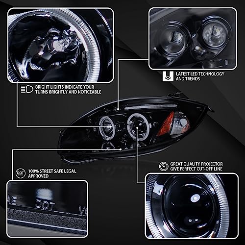 Specification: AUTOZENSATION Compatible with 2006-2012 Mitsubishi Eclipse, Left + Right Pair Headlamps Assembly, LED Eyelid Halo Glossy Black Housing Smoke Lens Projector Headlights