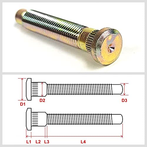 Overall dimension of stud (see diagram); D1: 17.60mm; D2: 12.00mm; D3: 11.75mm; L1: 5.00mm; L2: 11.00mm; L3: 1.25mm; L4: 60.00mm