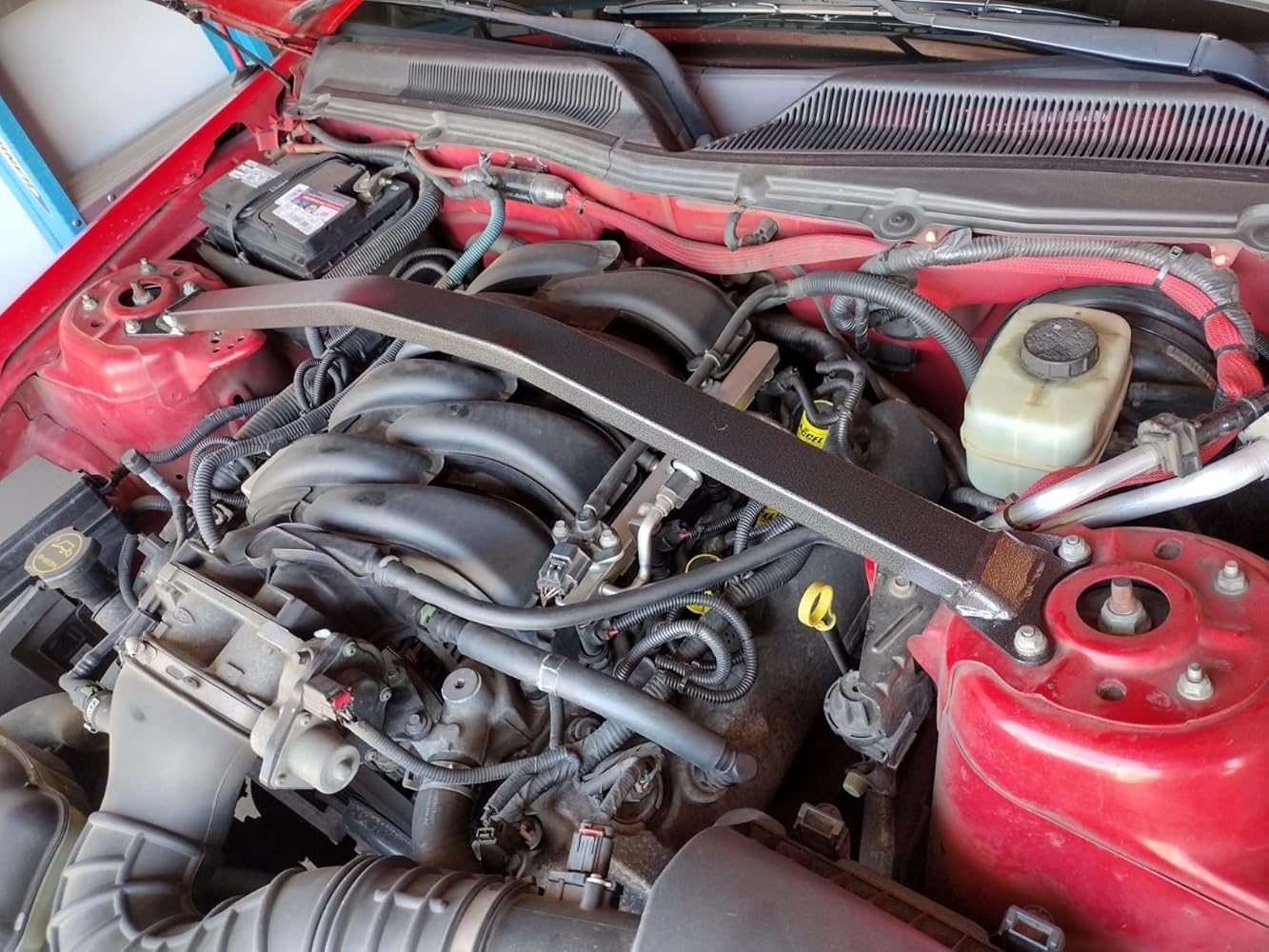 Installed on 05 Mustang GT. Got this on amazon because it matched the lowest price I could find elsewhere and I get the 5% back. This tightens up the front of the car by a noticeable amount right off the bat. I stood on this piece right out of the box (I’m about 230lbs) and there was zero flex to it which is exactly what you want. Bolted in easily and the fit was spot on. Looks great in the engine bay and the responsiveness instills a bit more confidence. Highly recommend this brace.