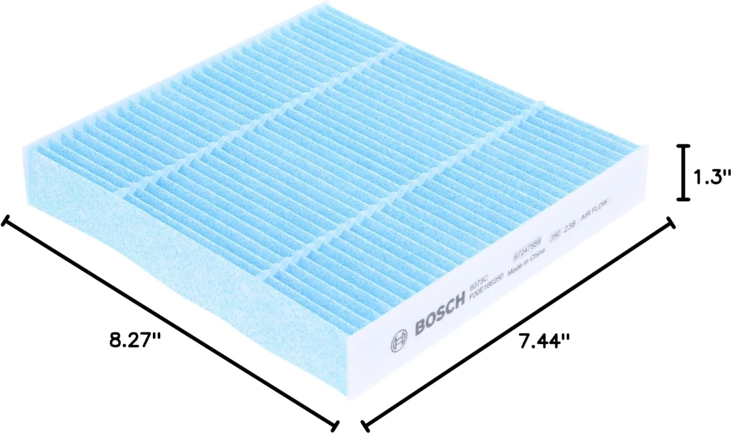 The BOSCH 6075C HEPA Cabin Air Filter provides true HEPA-grade filtration — capable of capturing 99.97% of microscopic particles as small as 0.3 microns. That includes: