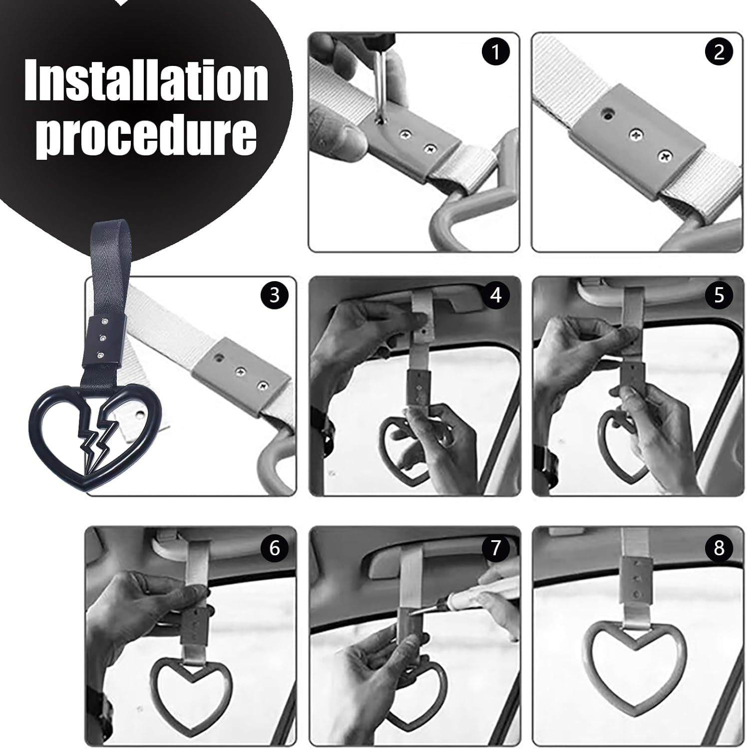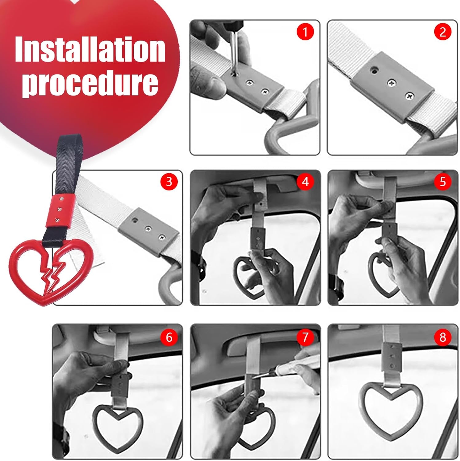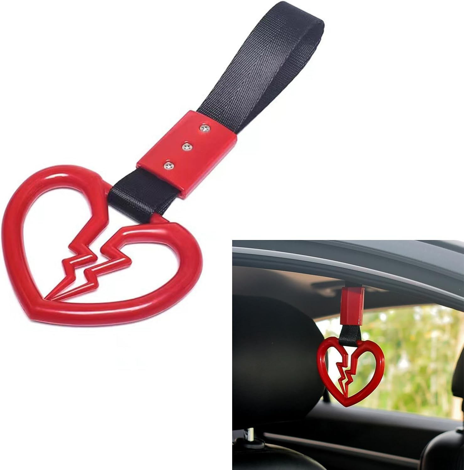 Specification: 2 PCS Car Warning Hanging Ring, ABS Nylon with Broken Heart Shape Rear Bumper Hand Pull Ring, Multi-Purpose Personalized Decorative Accessory, Compatible with Most Car Models (Red & Black)