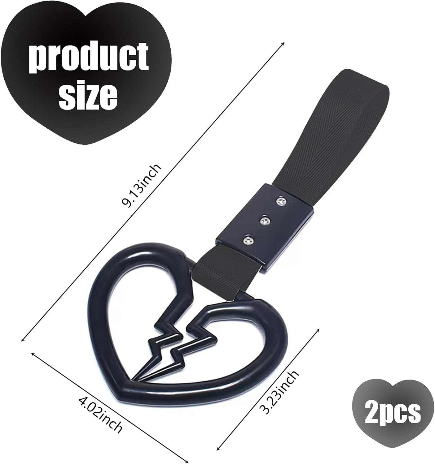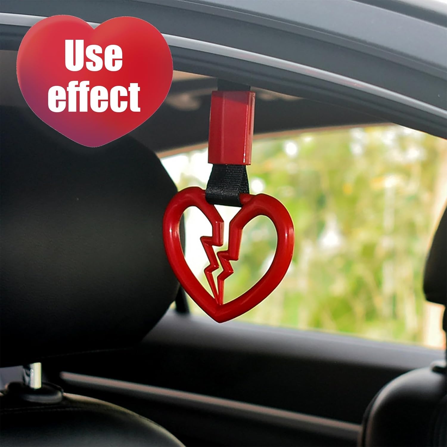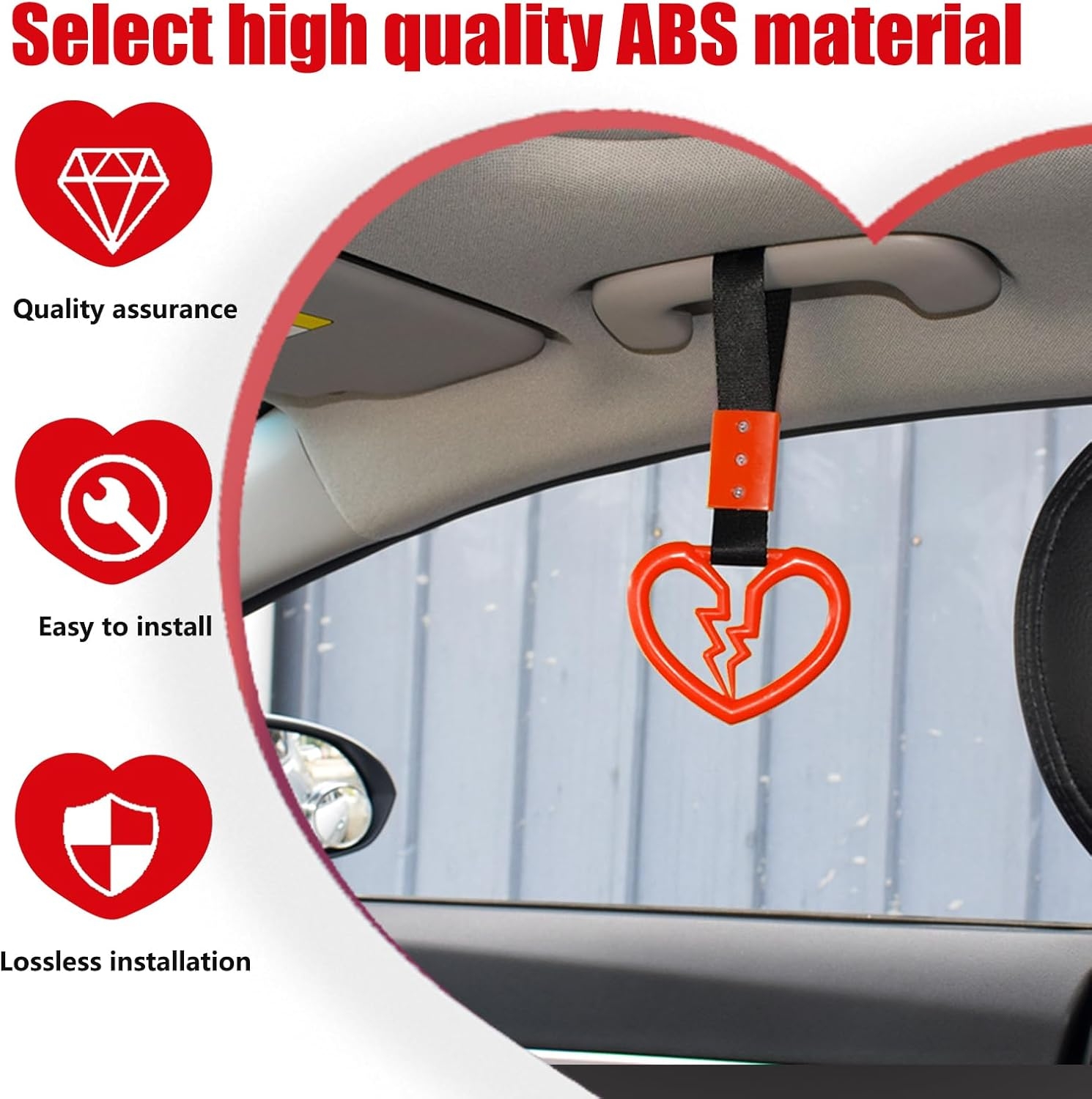 2 PCS Car Warning Hanging Ring, ABS Nylon with Broken Heart Shape Rear Bumper Hand Pull Ring, Multi-Purpose Personalized Decorative Accessory, Compatible with Most Car Models (Red & Black)