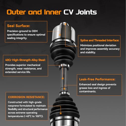 【Highly Precise Engineering】 The Front CV axles are created by meticulous instrumentation and rigorously tested before selled to make interfaces fit your vehicle seamlessly.
