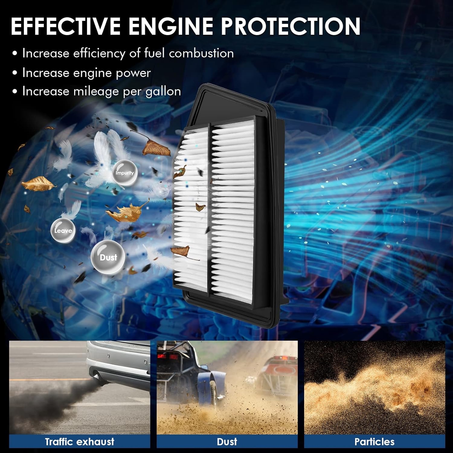 • [5 mins 3 steps Easy Installation] Compatible match for the OEM air filter.No need tools or mordification. Follow the 3 steps installation instruction in package you can easily complete replacement by yourself in 5 minutes.
