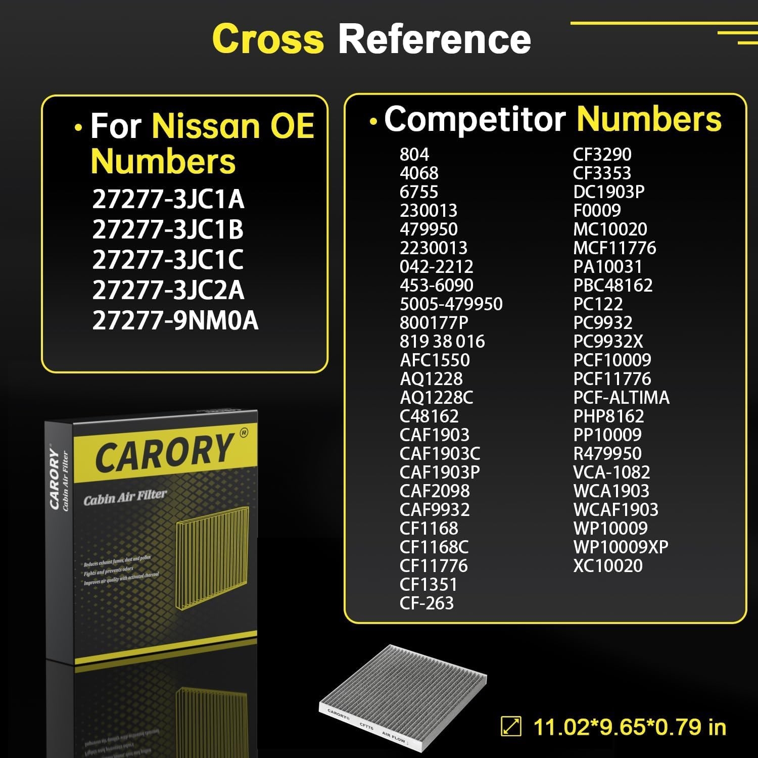 Specification: Cabin Air Filter w/Activated Carbon for Nissan, Infiniti – Altima, Maxima, Murano, Pathfinder, JX35, QX60