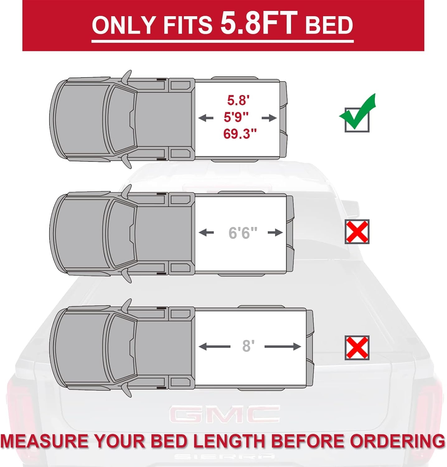 Exact Fit for 5.8FT / 69.9″ Fleetside Beds: