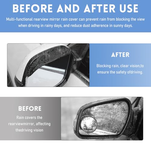 【Practical Function】: It’s a big hidden danger if we can’t see our mirrors while driving in the rain. The rain shield helps guard against raindrops falling on the mirrors, giving you a clearer view of the rear and a safer driving experience, increasing driving safety.