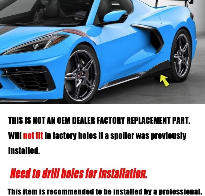 These side skirt extensions install directly onto the factory rocker panels using standard mounting points. Professional installation is recommended for perfect alignment — because crooked aero on a Corvette is unacceptable.