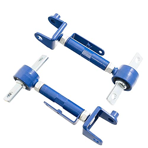 These rear upper Camber-Arms are adjustable to fine tune your cars handling in the rear. When lowering a car, these will eliminate premature tire wear caused by the rear wheels riding upon the inside tread only.