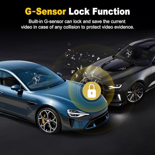 G-Sensor & Loop Recording: This dash cam has a built-in G-sensor that instantly locks and saves collision video when the car detects an incident or collision. This dashcam’s loop recording function automatically overwrites the oldest unlocked recording when the memory is full, ensuring continuous recording. Loop recording will not overwrite locked files.